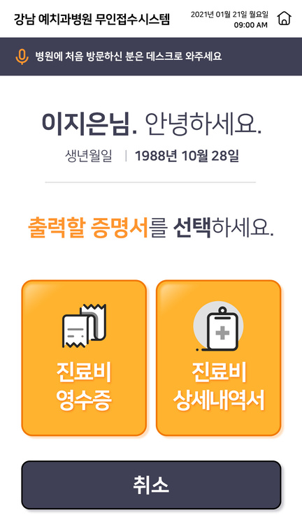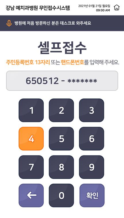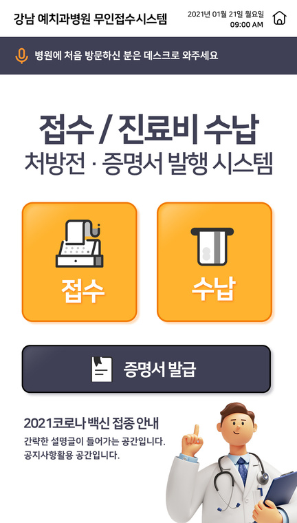 문구(접수/수납/처방전)에 조명이 켜 집니다.